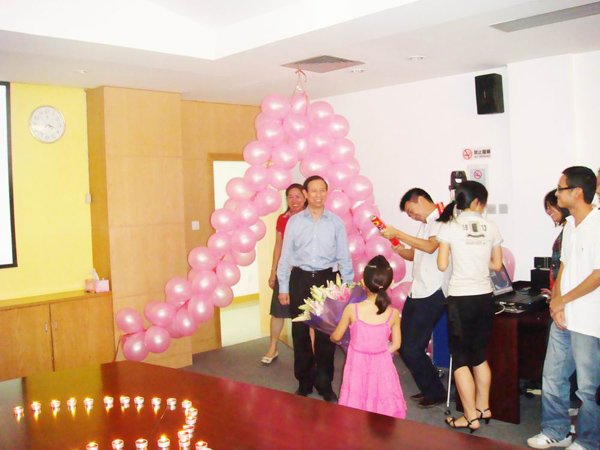 在溫情的八月迎來了華遠集團創(chuàng)始人嚴(yán)文亮先生的生日,華遠集團員工自發(fā)為嚴(yán)總舉辦了一個神秘而又驚喜的生日Party。粉色的氣球、雙心相交的生日蠟燭、醇香的美酒、誘人的蛋糕,點燃了現(xiàn)場的氣氛也傳遞出了參與者的喜悅。在舉杯共慶之時大家道出了自己內(nèi)心最真誠的祝福。8月份過生日的員工,幸運地同嚴(yán)總共同分享這份溫馨與快樂,并合影留念。