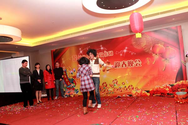 晚會在集團公司俊男靚女的勁舞下開場,集團各部門、各分公司、項目部集體錄制的《我們都是一家人》的祝福短片回首2011,董事長新春賀辭為我們指明了2012年努力的方向,一系列的評優(yōu)頒獎活動,讓大家深刻的體會到一分耕耘一分收獲??袋c最大的娛樂環(huán)節(jié)讓大家笑鬧一片,加深了彼此間的溝通與了解。