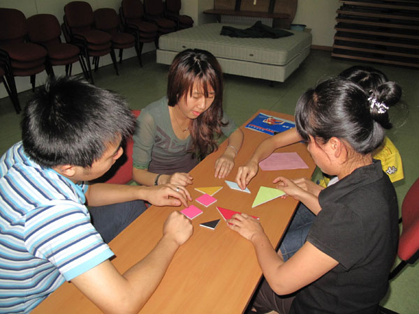 7月9日,華遠(yuǎn)集團(tuán)繼“員工精神”系列培訓(xùn)后,成功舉辦“七巧板”拓展訓(xùn)練。該項(xiàng)訓(xùn)練是以七巧板為道具,模擬公司決策層及各分公司、各部門(mén)的溝通協(xié)作,通過(guò)團(tuán)隊(duì)整合完成一系列復(fù)雜的任務(wù)的過(guò)程。活動(dòng)現(xiàn)場(chǎng)氣氛十分熱烈,在熱身活動(dòng)中各位學(xué)員都已積極投入、熱情高漲。在七巧板模擬訓(xùn)練游戲中,大家更加努力認(rèn)真地對(duì)待自己的任務(wù),千方百計(jì)尋找各種辦法實(shí)現(xiàn)“訂單”。該游戲也十分直觀、真實(shí)的投射出了每位員工的工作狀態(tài)。