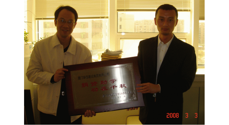 黃鶴麟副書記代表希望工程領導小組辦公室向我司頒發(fā)紀念牌匾,并向嚴總贈送誠信鼎。